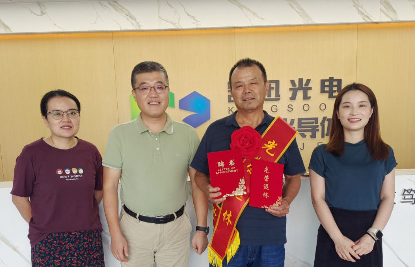 经过多年辛勤工作和奉献,我司厂务部韩少俊同志即将光荣退休。9月19日常务副总潘彬,工会主席江霜,人资部经理曹秋萍一同为该同志颁发了返聘书及退休礼物。