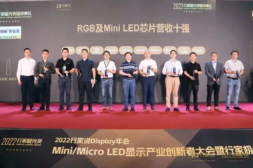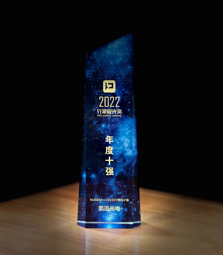 行家说Display于今年第三季度启动“显示行家极光奖”评选活动,旨在表彰2022年度LED显示领域优秀的产品、案例和企业。经过数月紧张评选,11月18日晚,显示行家极光奖在深圳隆重举行,现场揭晓了2022行家极光奖各大奖项的得主,凯迅光电受邀参加并荣获“RGB及MiniLED芯片营收十强”。