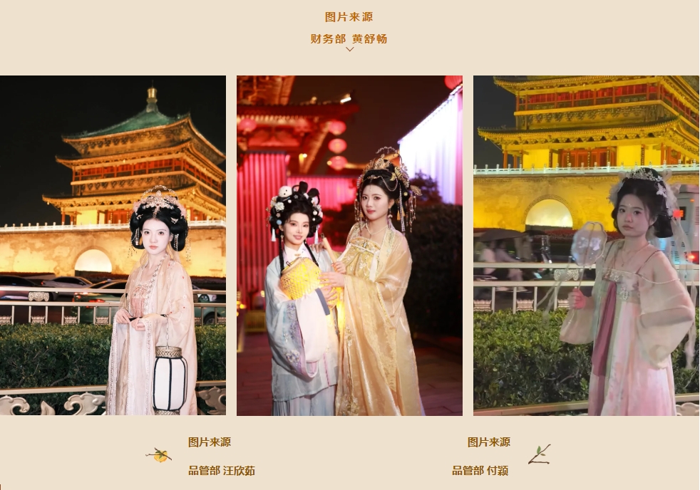 第三站,【西安博物院】,第四站【钟鼓楼广场、回民街】。第五站我们来到了【大唐不夜城】,大唐不夜城晚上灯火璀璨,光影中的仿古建筑流光溢彩,气势恢宏,宛如大唐盛世再现,令人流连忘返!许多同事在“长安”夜景中留下了美丽的照片。