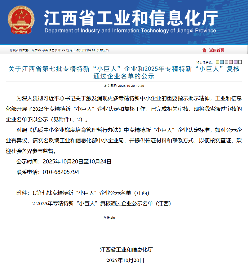 近日,江西省工业和信息化厅公布了本省通过2025年专精特新“小巨人”复核的企业名单,凯迅光电榜上有名,成功延续了国家级专精特新“小巨人”企业称号。